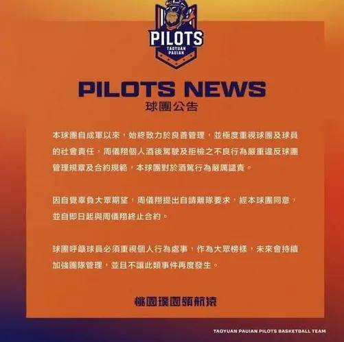 周仪翔的职业生涯近年来可谓一波三折。去年,他因酒后驾驶并拒绝接受检查,引发了外界广泛讨论。当时效力的P联赛桃园领航猿队随即发布官方声明,指出周仪翔的行为严重违反球队规定,并宣布立即终止与他的合约。这一事件不仅让他失去了工作,也对其职业形象造成了不小的打击。